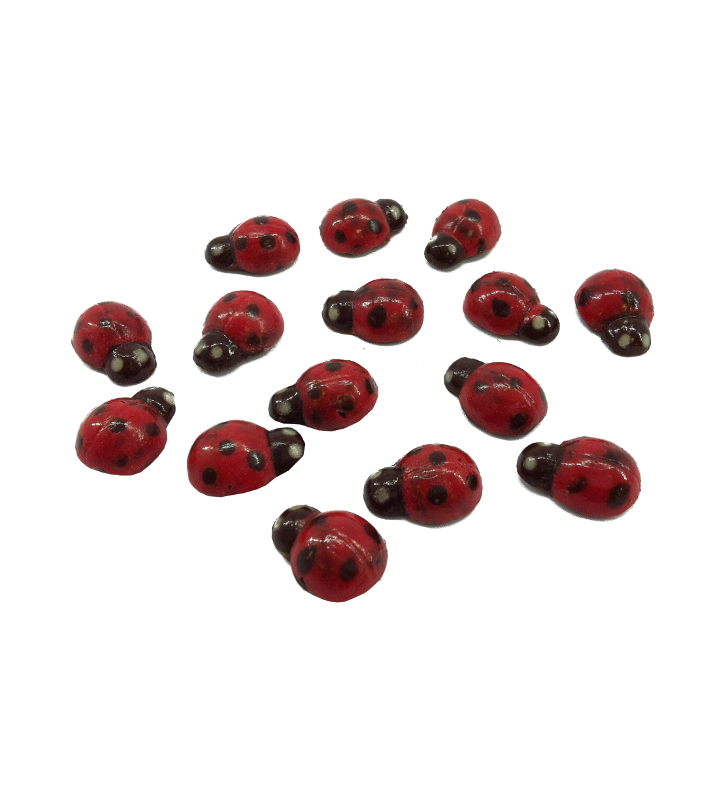 Coccinelle en chocolat mixte (blanc à l'extérieur et noir à l'intérieur), d'une dimension de 1.5cm, pour un poids de 2g environ