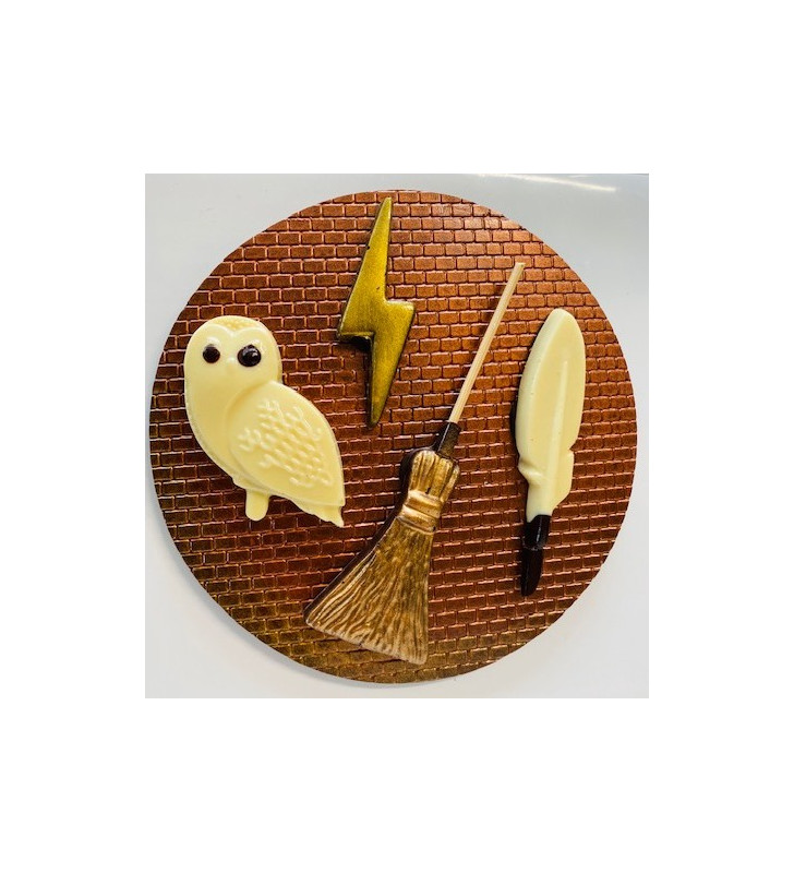 Dragon collé sur une plaque (diamètre 14.5cm), le tout en chocolat noir de qualité supérieure