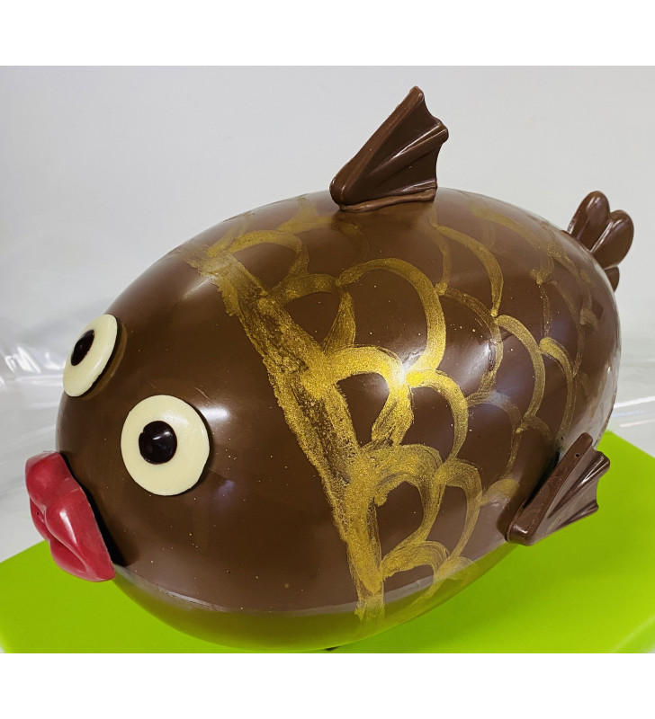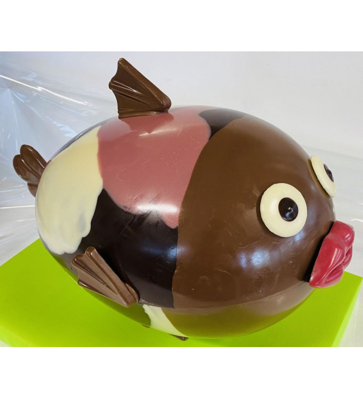 Gros poisson en chocolat lait et blanc de 18cm de diamètre et d'une longueur d'environ 30cm